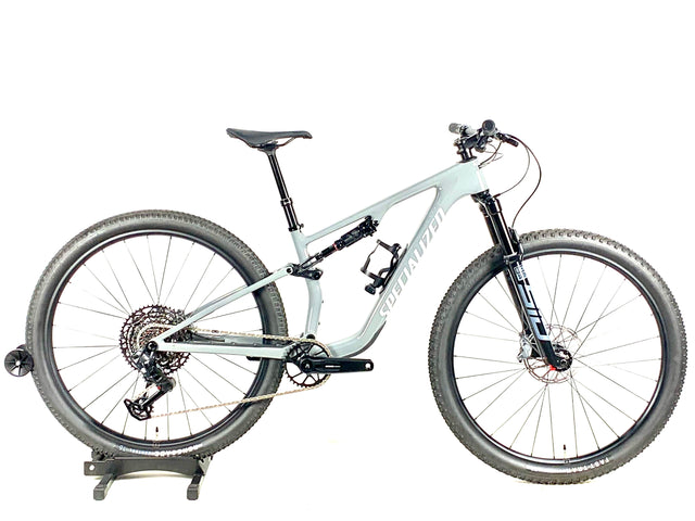 Preowned 2025 Specialized Epic 8 Comp 29er complete with SRAM AXS Eagle Wireless 1X12 components, SRAM S1000 Eagle Crank, SRAM Code Bronze Stealth hydraulic disc brakes, RockShox SID Select Fork with 120mm of Travel, X-Fusion Manic Dropper Seatpost, and Specialized Alloy 29er Wheelset Size: Small.