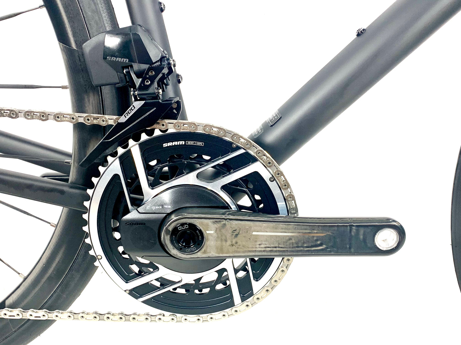 | Front Derailleur: | NEW SRAM RED AXS, braze-on |