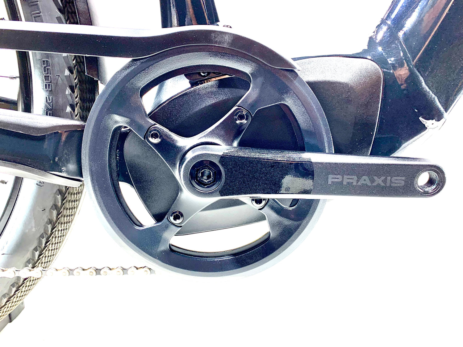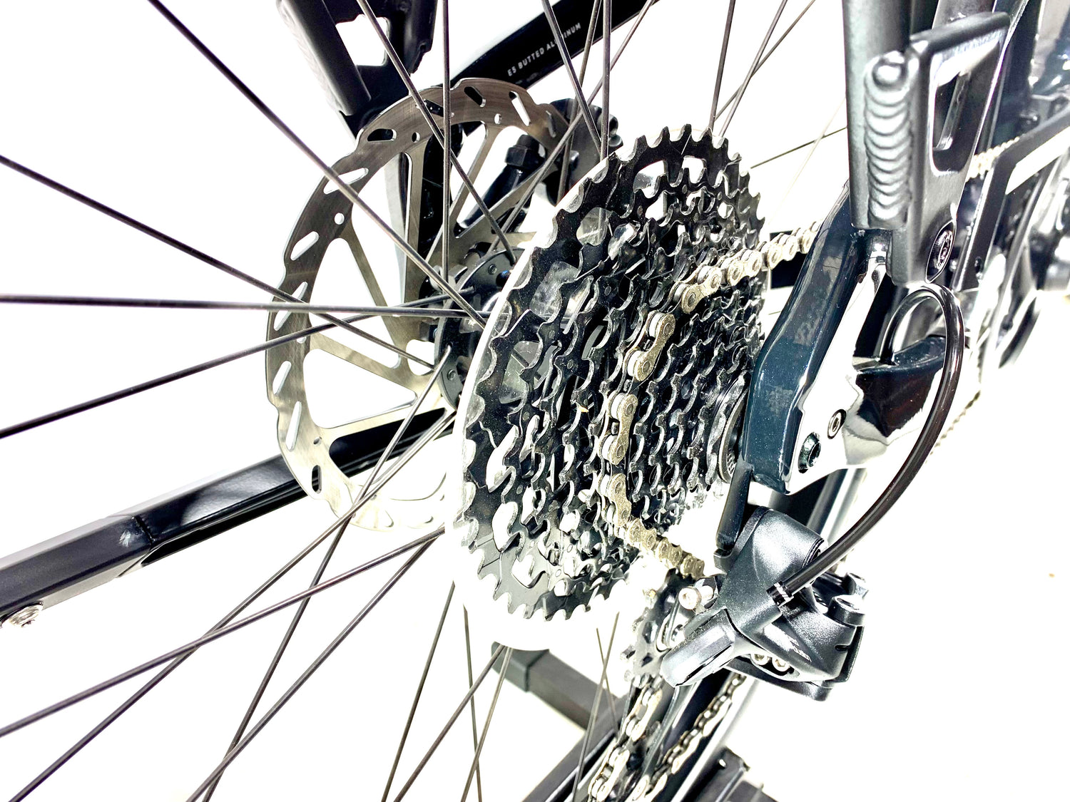 E5 Aluminum, bottom bracket motor mount, fully integrated & lockable downtube battery, internal cable routing, lock and front rack mount