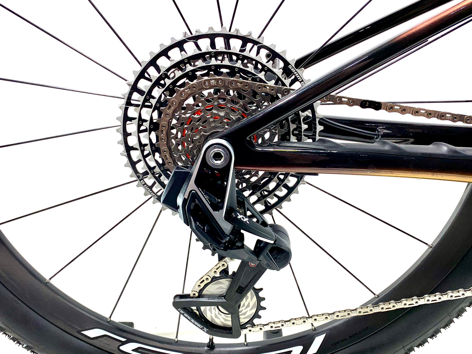 | Rear Derailleur: | SRAM XX Eagle AXS w/ Ceramic Speed Oversized Pulies |