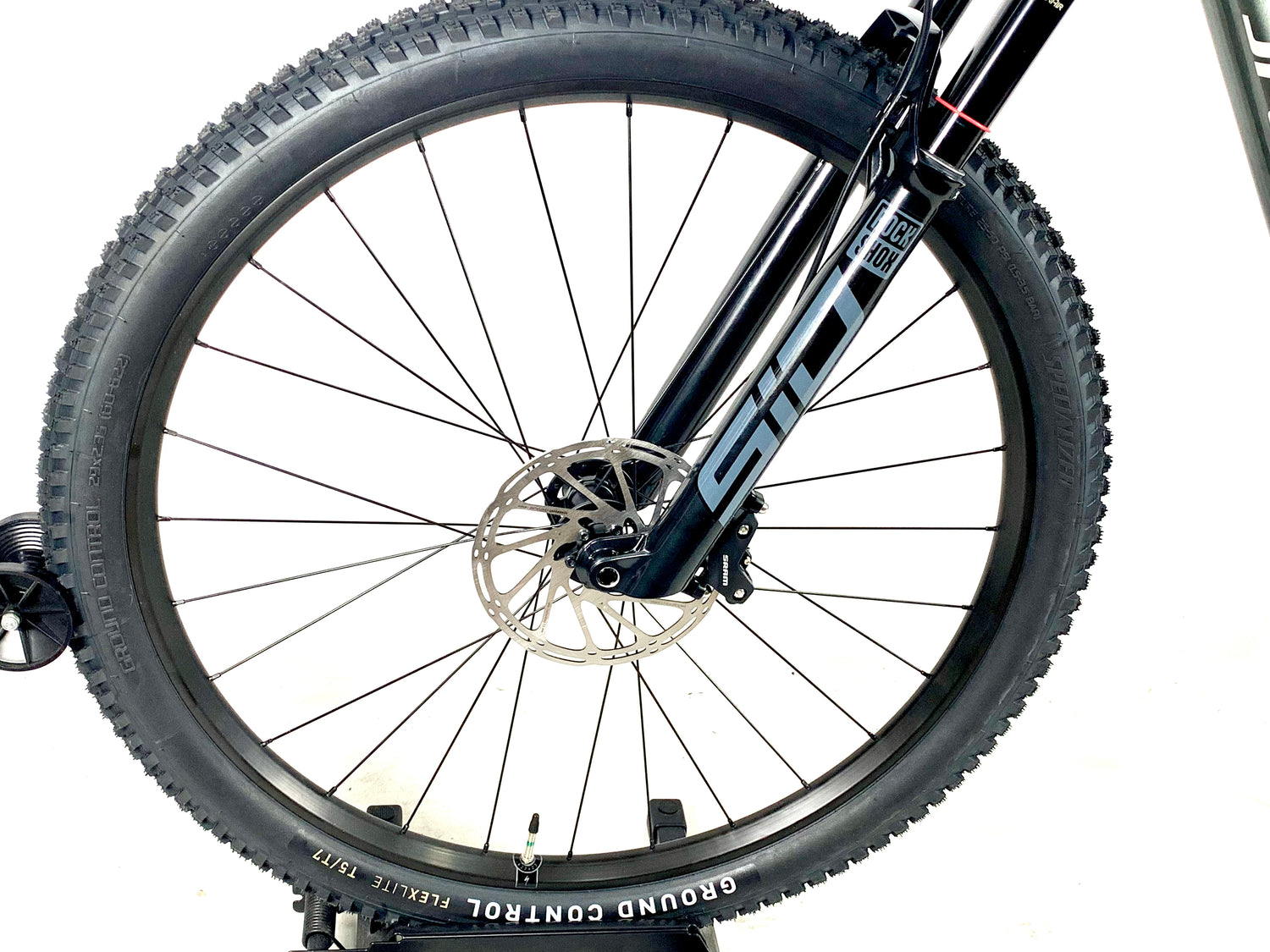 Fork: RockShox SID, Rush damper, 44mm offset, 15x110mm thru-axle, 120mm of travel, Maxle Stealth